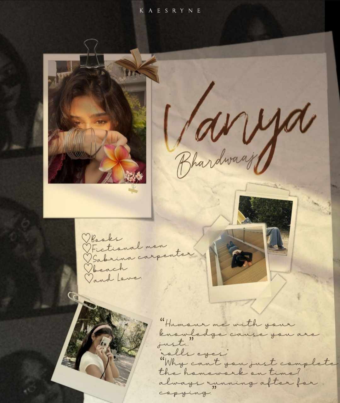 With an infinite love for books, songs, and quiet corners, Vanya is the definition of an introvert. She's spent most of her school years tucked behind novels and notebooks, with barely a handful of friends to talk to. Small talk and meaningless conversations? Not her thing.